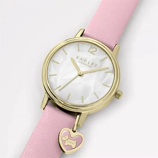 Radley RY21796A Ladies Pink Leather Watch Gold Tone with Heart Charm