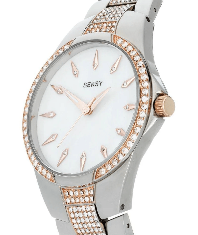 SEKSY Rose & Steel Pearl Swarovski Crystal Bracelet Watch 2257