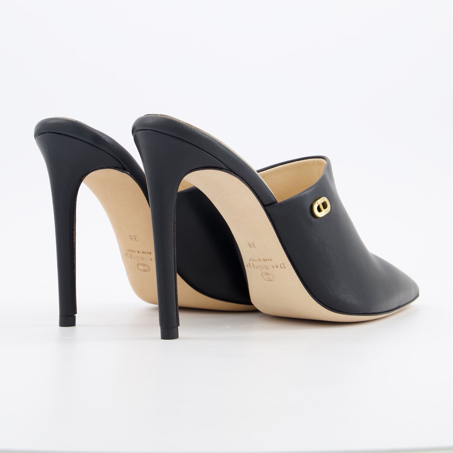 Dee Ocleppo Black Leather Pointed Toe Stiletto Mule Sandals Women