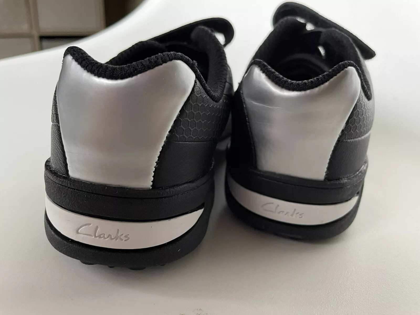 Clarks Kids Award Leap Junior Black Trainers Leather Velcro Shoes UK 11.5 EU 30