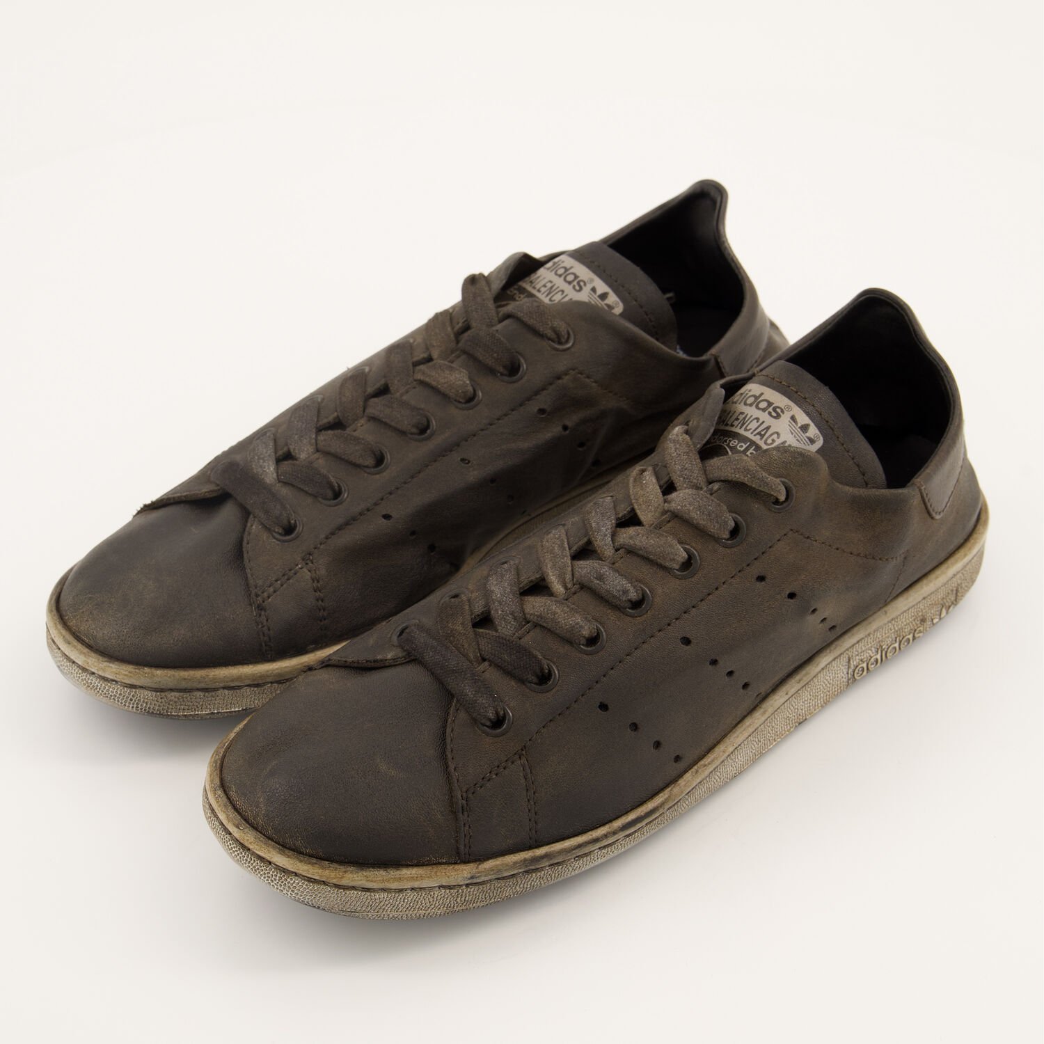 Balenciaga x Adidas Stan Smith Worn-Out Black Distressed Leather Trainers UK7