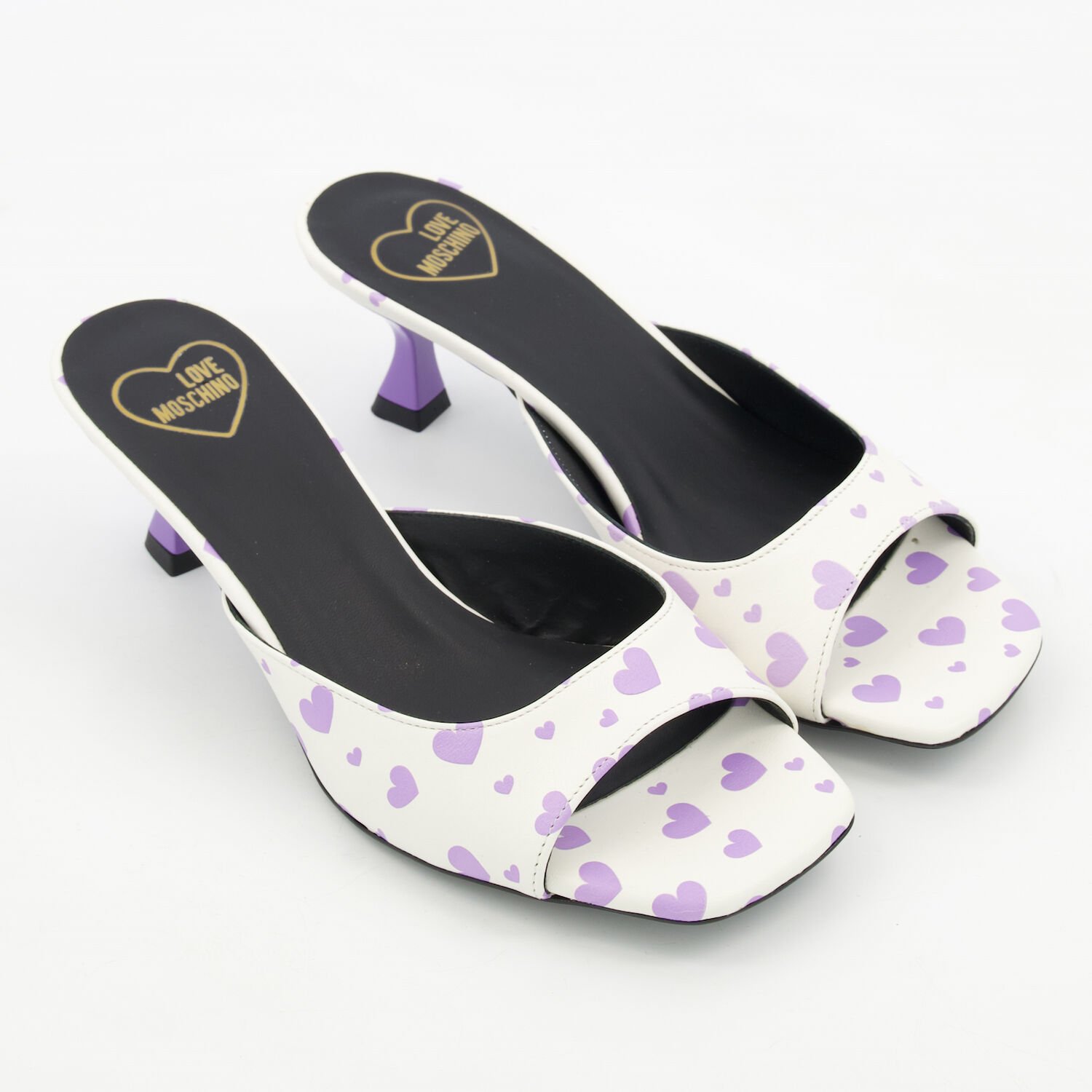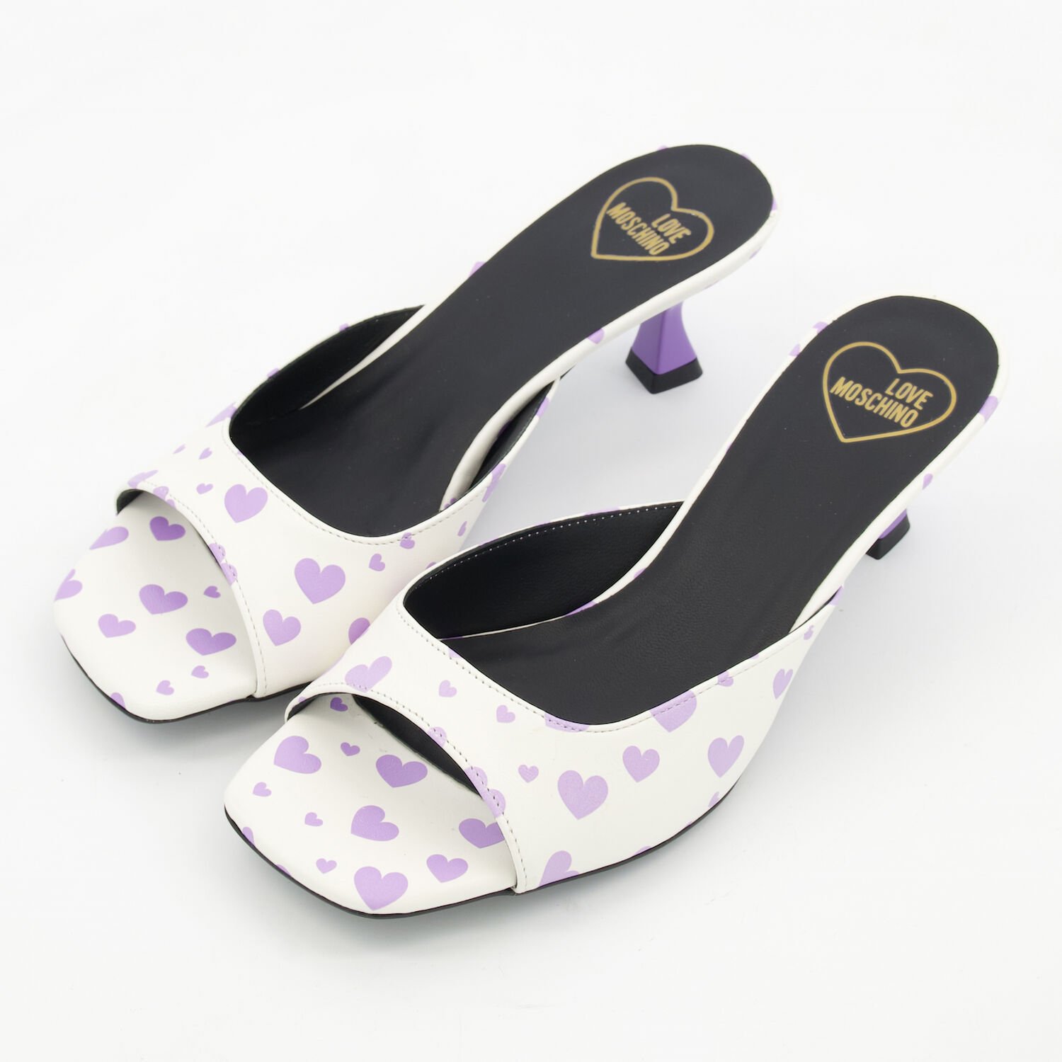 Love Moschino Rocchetto55 Lavender White Leather Mules Heeled Slip On