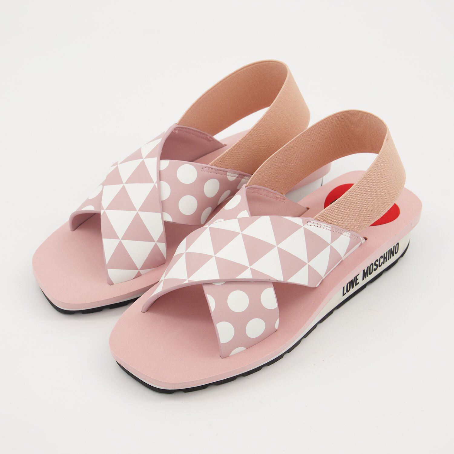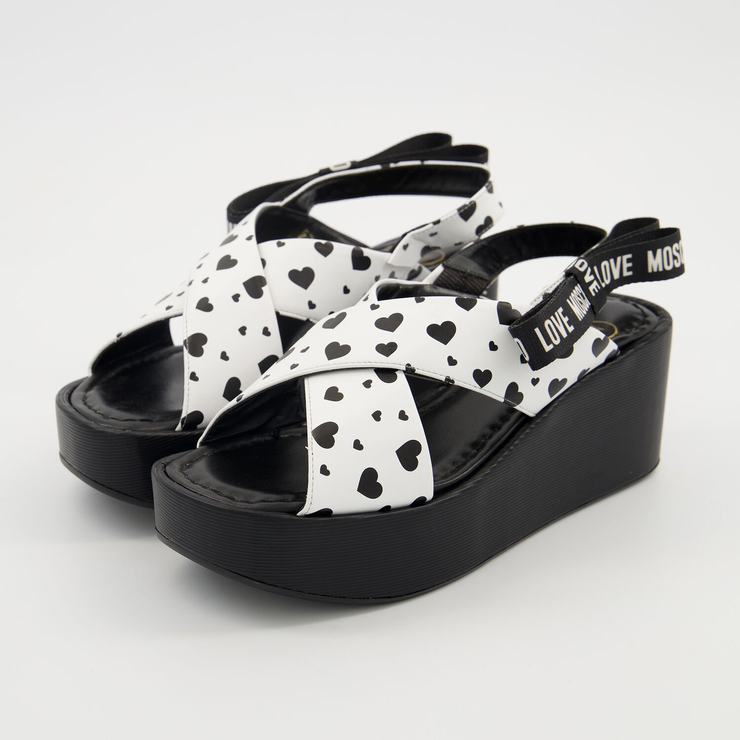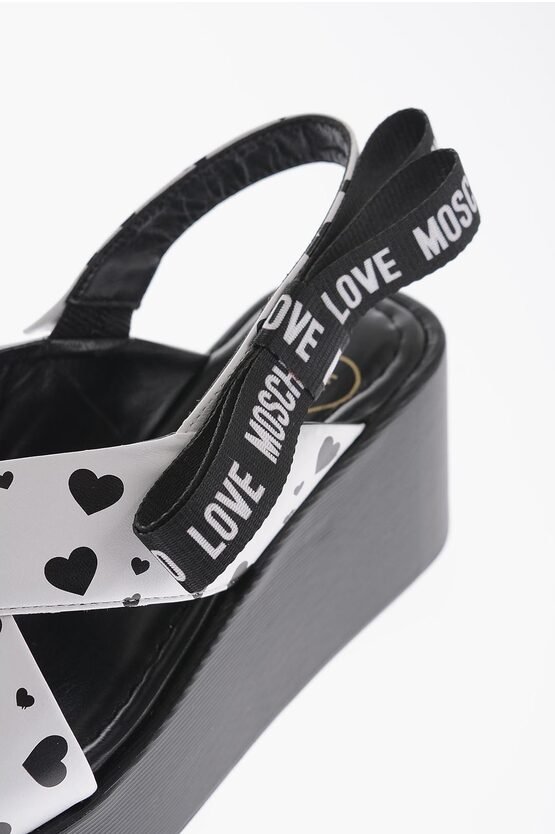 Love Moschino White Heart Wedge Leather Sandals UK Size 5
