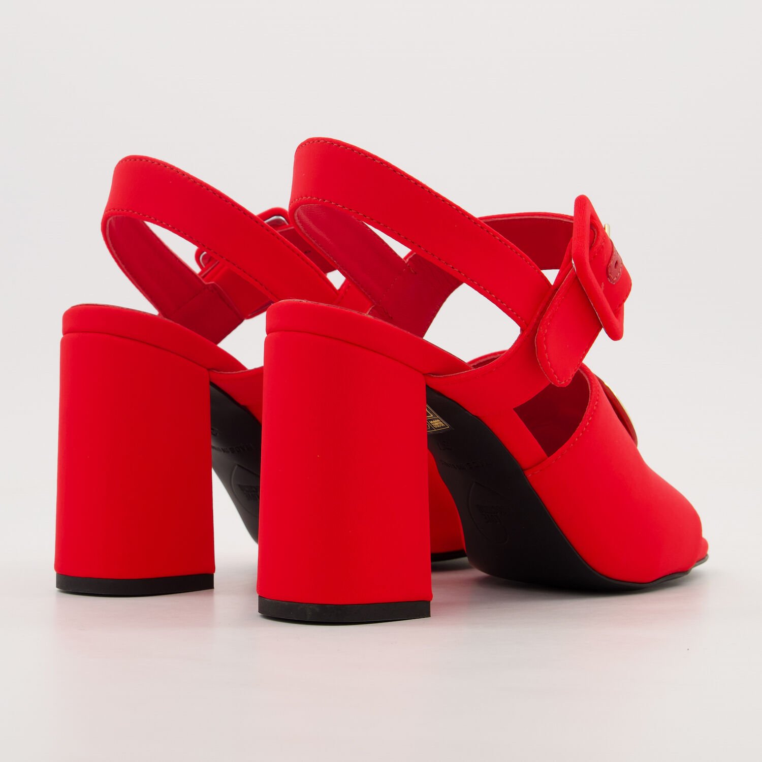 Love Moschino Red Quadra85 Heart Logo Heeled Sandals