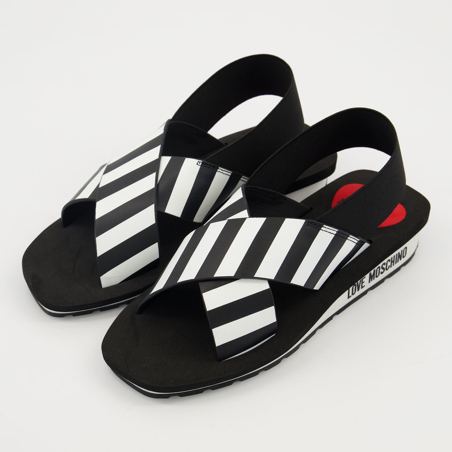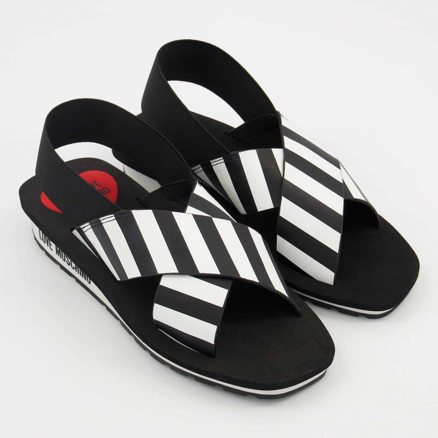 Love Moschino Black Striped Slingback Sandals UK5 EU38 US7