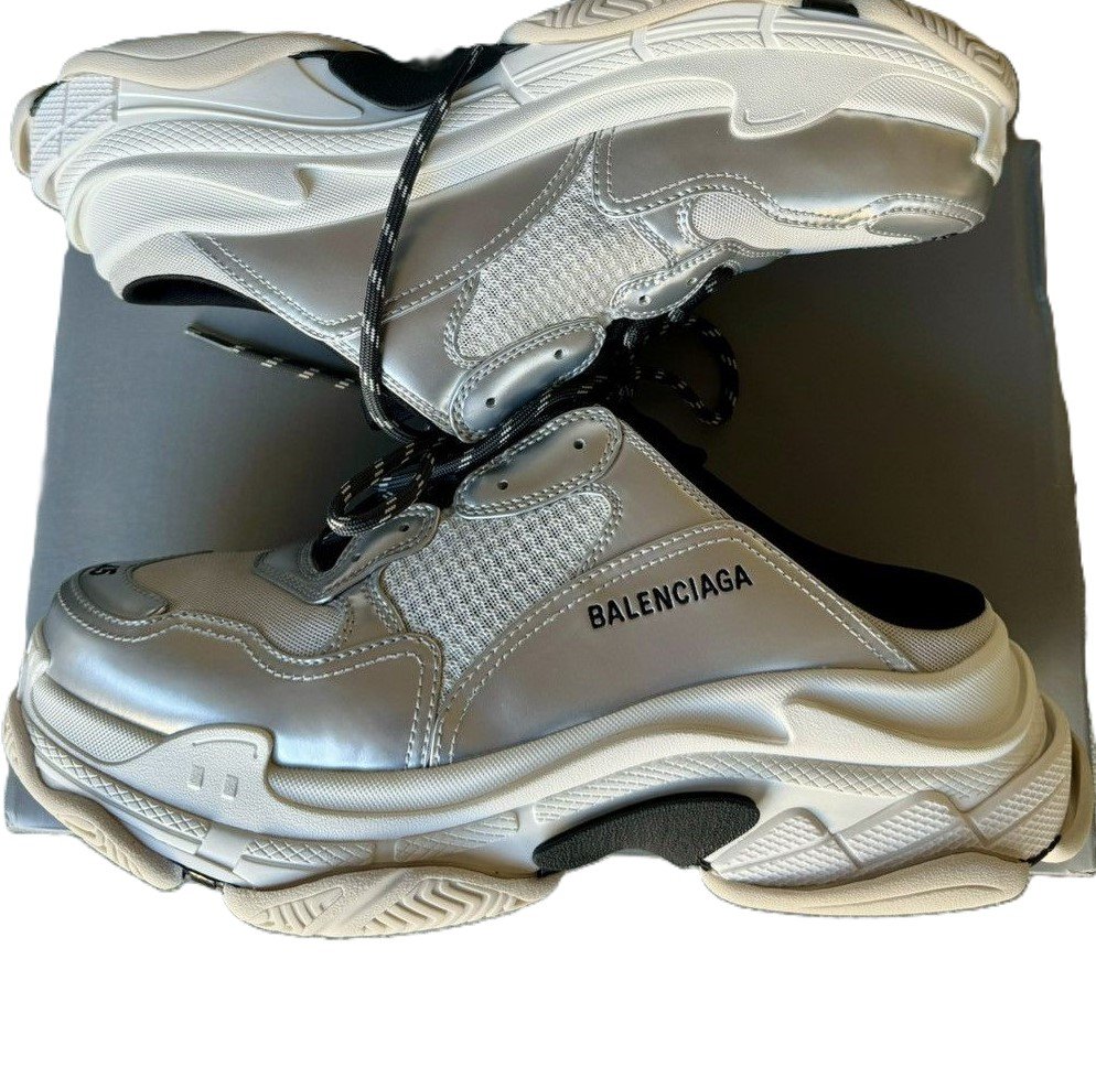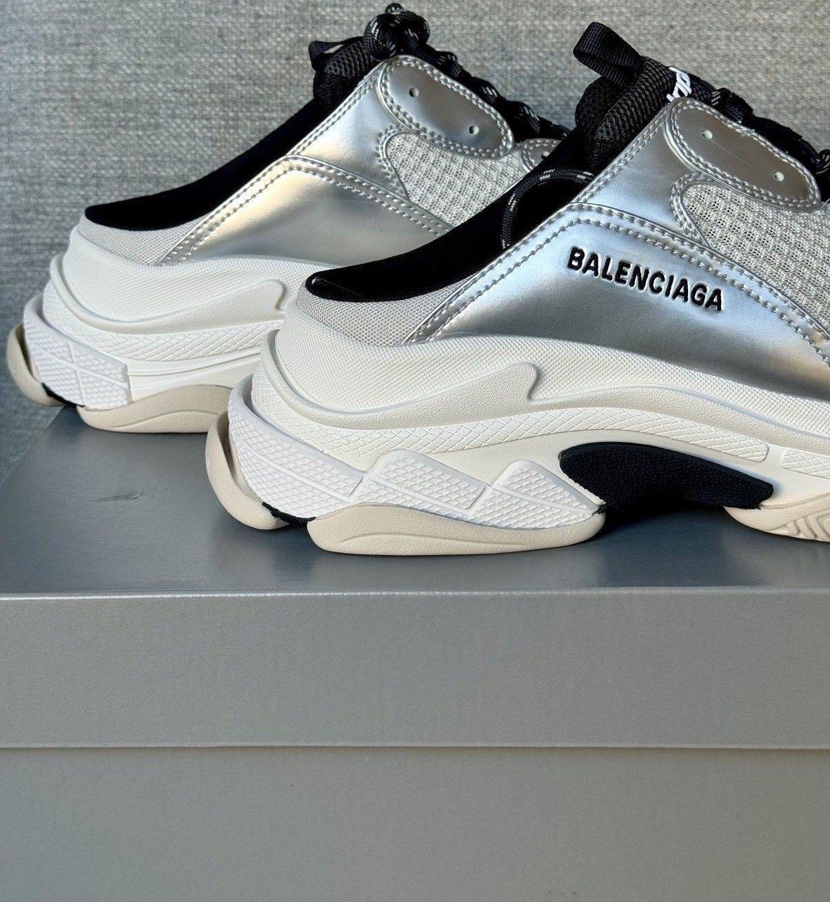 Balenciaga Triple S Mules Slip On Trainers Black White Silver Women