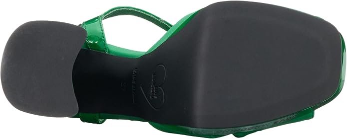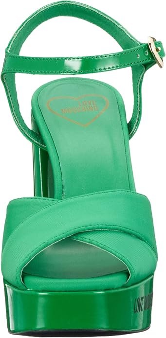 Love Moschino Green Patent Leather Heeled Sandals Heart Buckle Block Heel