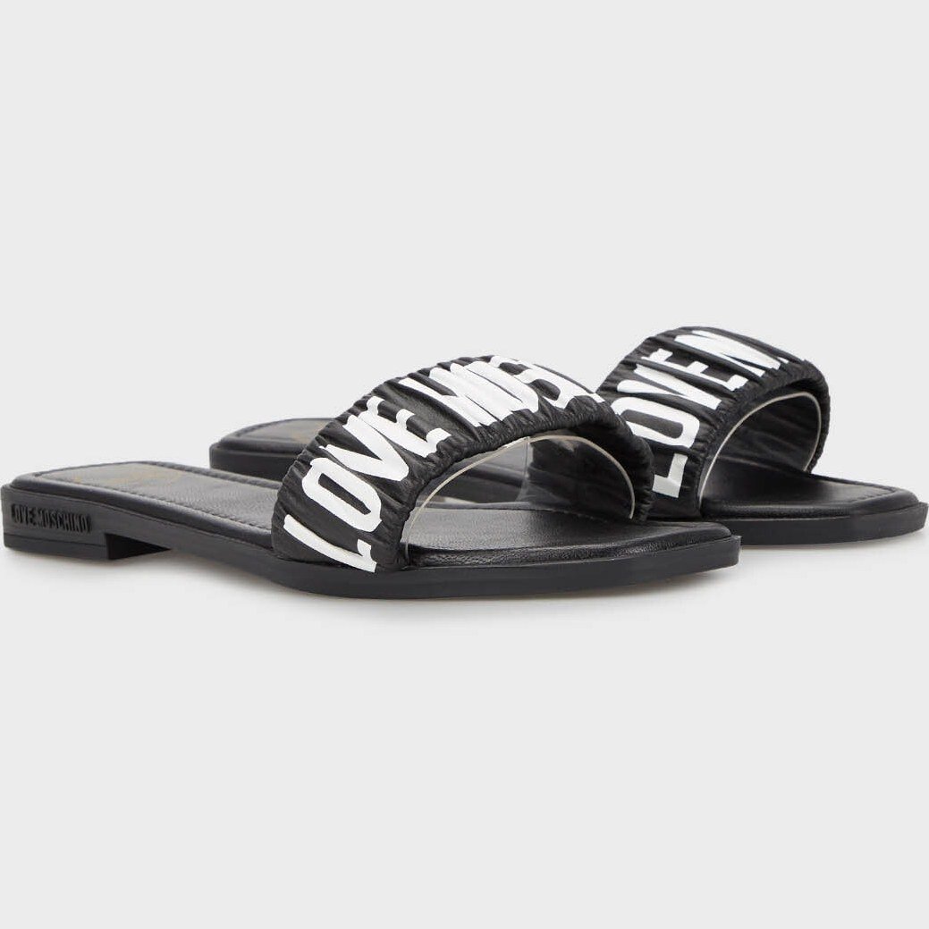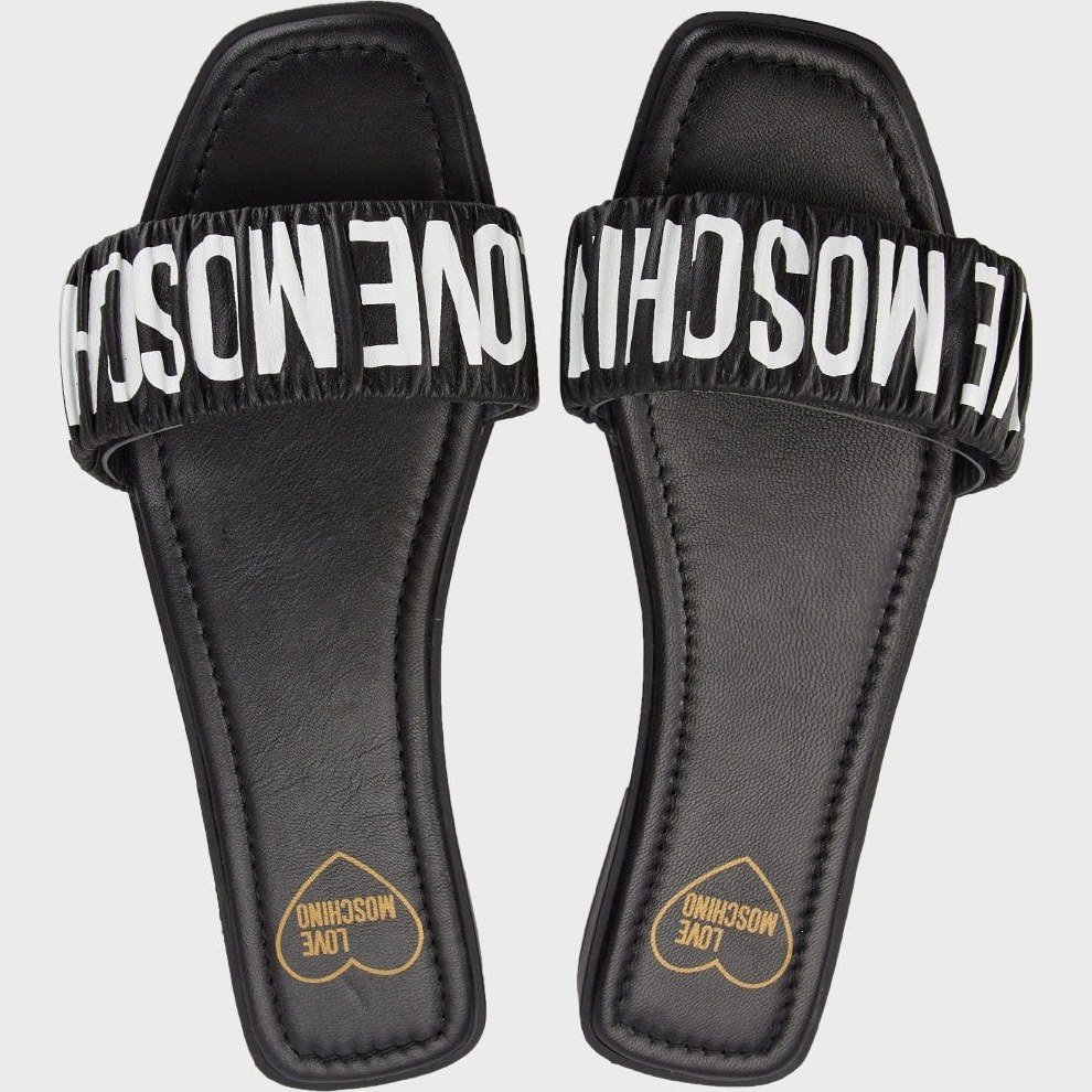Love Moschino Black Leather Flat Sandals UK5–7 | Designer Logo