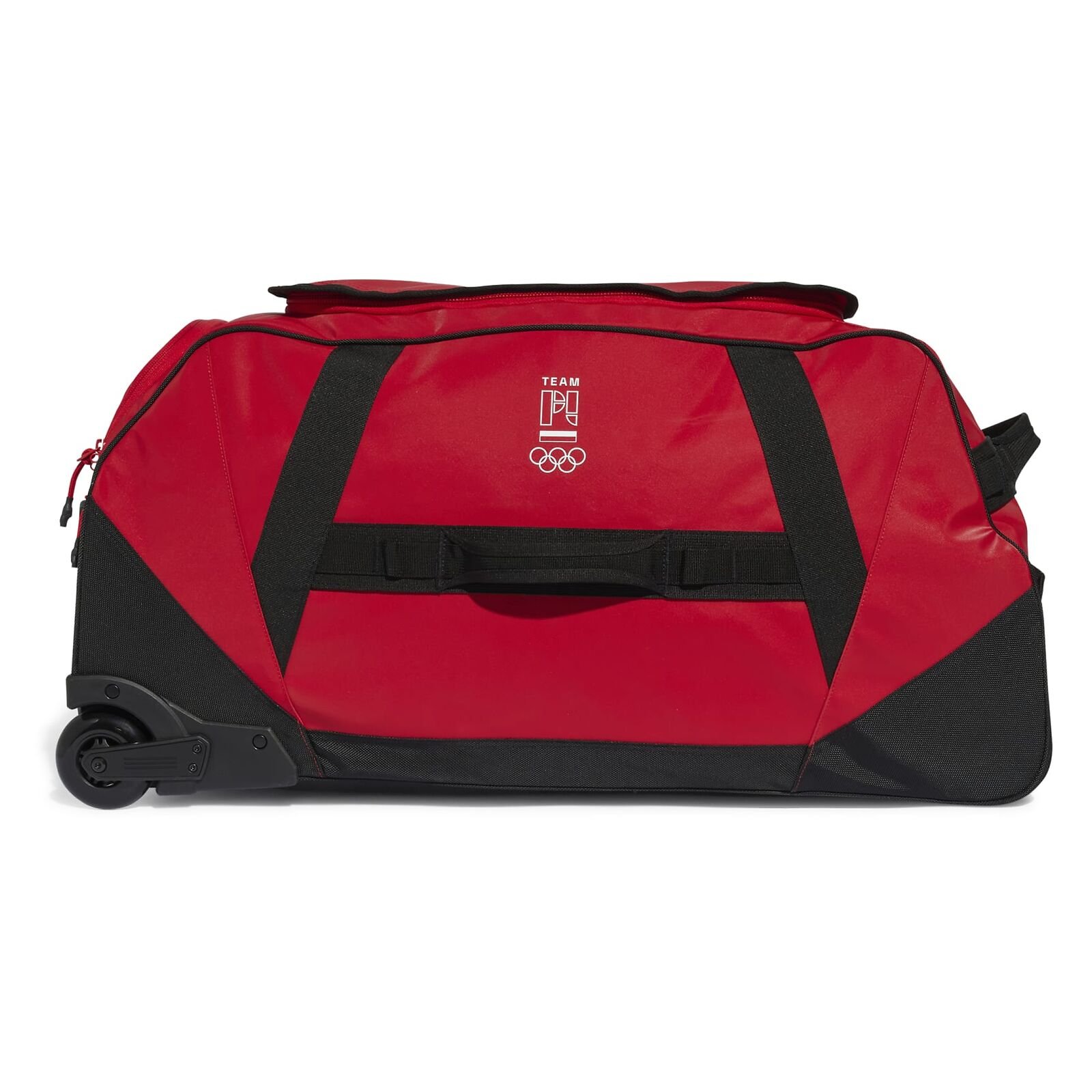The Polish National Team adidas NOC Poland Travel Bag L, a premium 100-litre wheeled travel holdall created for athletes and loyal fans. Designed with durability, comfort, and national pride in mind, this large travel bag is ideal for weekend trips, sports training, and long-distance travel. Crafted from 100% recycled polyester, it features smooth-rolling wheels, padded carry handles, a spacious main compartment, internal zip pocket, and a secure side zip pocket. Finished with an Olympic flag print, it forms part of the official collection of the Polish Olympic & Paralympic Team. Whether you’re heading to training or travelling abroad, this adidas sports trolley bag offers exceptional storage, premium quality, and unmistakable Polish pride.