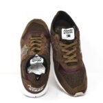 Men’s shoes in brown leather and fabric, brown laces and white Fuga Vibram sole.