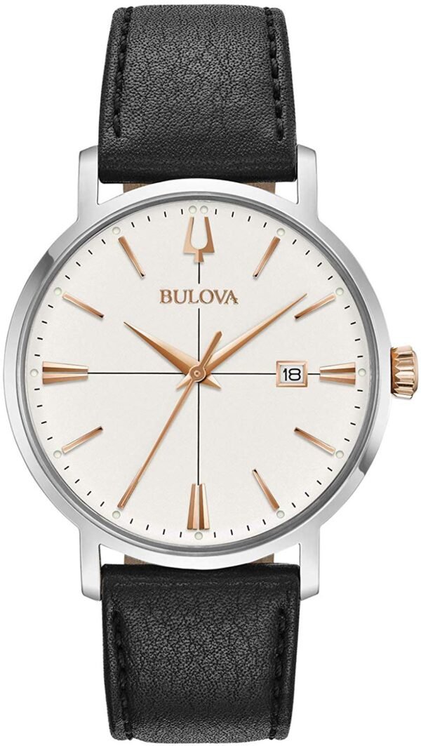 Bulova Men’s Designer Watch Leather Strap – Black Rose Gold Classic Aerojet Wrist Watch 98B254