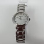 This Bulova women’s watch is classic yet subtly extravagant. It has a pink mother of pearl dial set with 3 diamonds. All encased in a solid stainless steel case and multi linked bracelet. One year warranty.