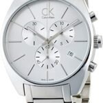 The Calvin Klein, Exchange series features a stainless steel 44mm case, with a fixed bezel, a silver dial and a scratch resistant mineral crystal.