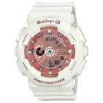 Protected by a tough and chunky white resin case, the Casio Baby-G Alarm Chronograph Ladies Watch BA-110-7A1ER 43mm is a staple of the legendary watch brand’s Baby-G collection.