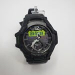 With a stainless steel case, this bold black watch by Casio as part of the G-Shock collection, this Gravitymaster presents a traditional timepiece with a futuristic twist. Matte grey time markings co-ordinate with the grey bezel, with green accents on the dial matching the seconds-hand. Made with shock resistant mineral glass, this watch is robust and also boasts a water resistancy of up to 200 metres. Featuring bluetooth synchronization, a link to your mobile, world time and more is easily achieved. Featuring a 1/1000-second stopwatch, countdown timer, 5 multi-function alarms, full auto-calender and an approximate battery operating time ranging from 6 to 19 months.