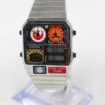 May the Force be with you, with this Rebel Pilot inspired watch from Citizen celebrating the Star Wars™ galaxy. Inspired by an original Citizen analog-digital watch from the 1980s, this stainless steel rectangular case watch is packed with features, including dual time and subdials with both the Rebel Alliance logo and the X-Wing with Rebel inspired colours. It also includes an alarm, the digital time, and the temperature, making it a unique and stand-out timepiece. This watch requires a battery. Whether you are a long-time fan who still believes the original trilogy can never be topped, or you’re just being introduced to this galaxy far, far away, this is a Star Wars watch every collector will want to show off.