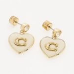 Delicately elegant and crafted with love, the Coach Heart Drop Earrings make a meaningful statement. These earrings feature gold-toned heart charms suspended from sparkling cubic zirconia studs. At the centre of each heart lies the iconic Coach ‘C’ emblem, adding a signature touch of sophistication. Perfect for gifting or adding a touch of charm to your own collection.