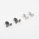 - The first pair features a classic and timeless design adorned with glistening pink cubic zirconia, offering understated sophistication.
