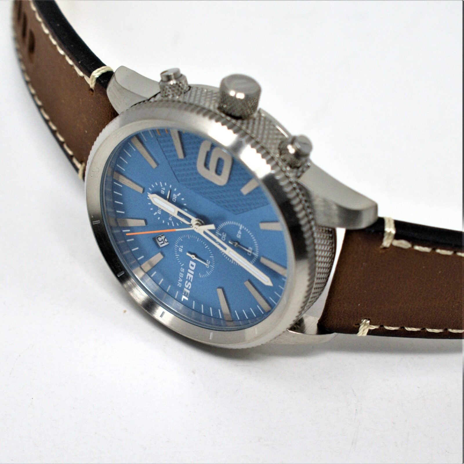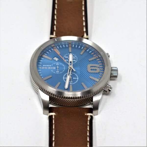 This trendy Rasp design has been crafted with a stainless steel case that features a pale blue chronograph dial with luminescent hands and grey tone hour markers. This model also features a date display, stopwatch functionality and has been finished with a brown leather strap which complements it perfectly.
