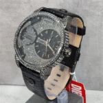 Jet-black pave case stones and a sleek embossed black leather strap convey sheer depth with a touch of attitude in this instantly iconic rendition of the Diesel Daddy watch collection.