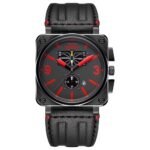 The Dogfight DF0045 Wingman is an eye-catching black and red design with intricate Miyota analogue movement, date function and sub-dial features. A square steel frame holds the circular dial face. Red and black analogue hands are surrounded by thick red hour markers. The DF0045 is protected by a 50m water resistance as well as a 2 year manufacturer warranty. Fastening by buckle on a thick black leather strap this Wingman design is a great addition to any outfit.