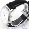 - Watch strap material: black leather.