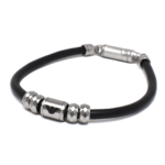 A stylish black leather bracelet crafted with stainless steel faceted beads along with the iconic Emporio Armani logo in the centre.