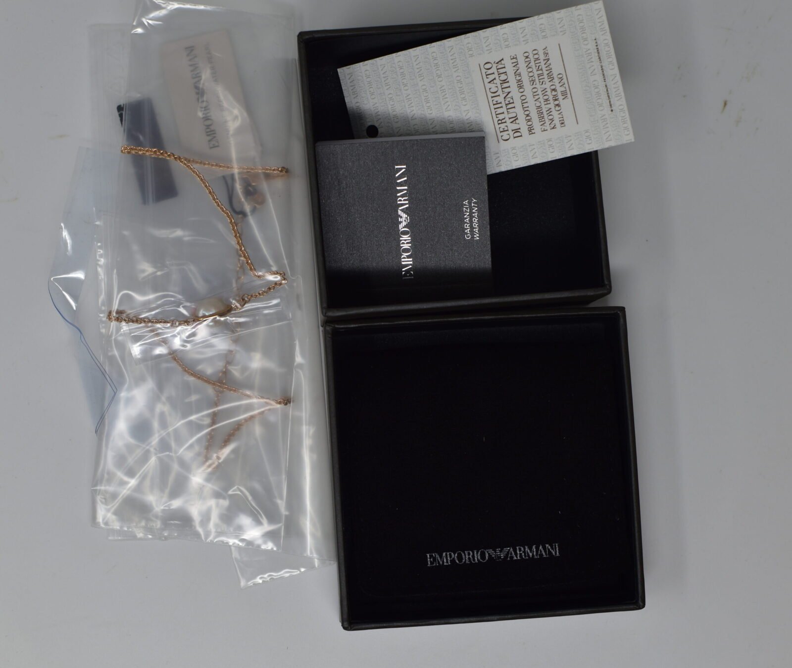 The Emporio Armani Essential Rose Gold Tone Pearl Necklace EG3532221 is created in Sterling Silver. Featuring a beautiful white pearl with a band of rose gold tone detailing and a rose gold tone eagle logo, the necklace measures 35cm + 7cm in length.
