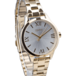 - Band Material: Stainless steel with gold-tone finish