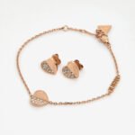 Elevate your gifting game with this minimalist Guess gift set, designed to embody sophistication and charm. Crafted with finesse from lustrous rose gold plated steel, adorned delicately with crystals, this set exudes a timeless elegance that captures attention effortlessly. The set comprises a pair of enchanting stud earrings and a matching bracelet, both exquisitely crafted to add a touch of sparkle to any ensemble. For any special occasion, this Guess gift set is bound to make a lasting impression.