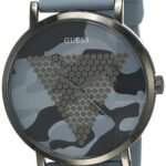 The Mens Imprint Watch W1161G3 is a great example of the Guess watch range. GUESS Gents watch featuring a polished gunmetal case, camouflage dial with studded triangle logo and grey camouflage smooth silicone strap.