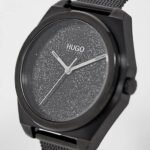 HUGO has captured the stars themselves and used diamond dust on the #IMAGINE collection. Carry the stars with you wherever you go. This ladies watch features a 35mm black IP case, black diamond dust dial and black IP mesh bracelet.