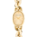 - CASE:Â 22mm Oval, Gold-Plated, Stainless Steel