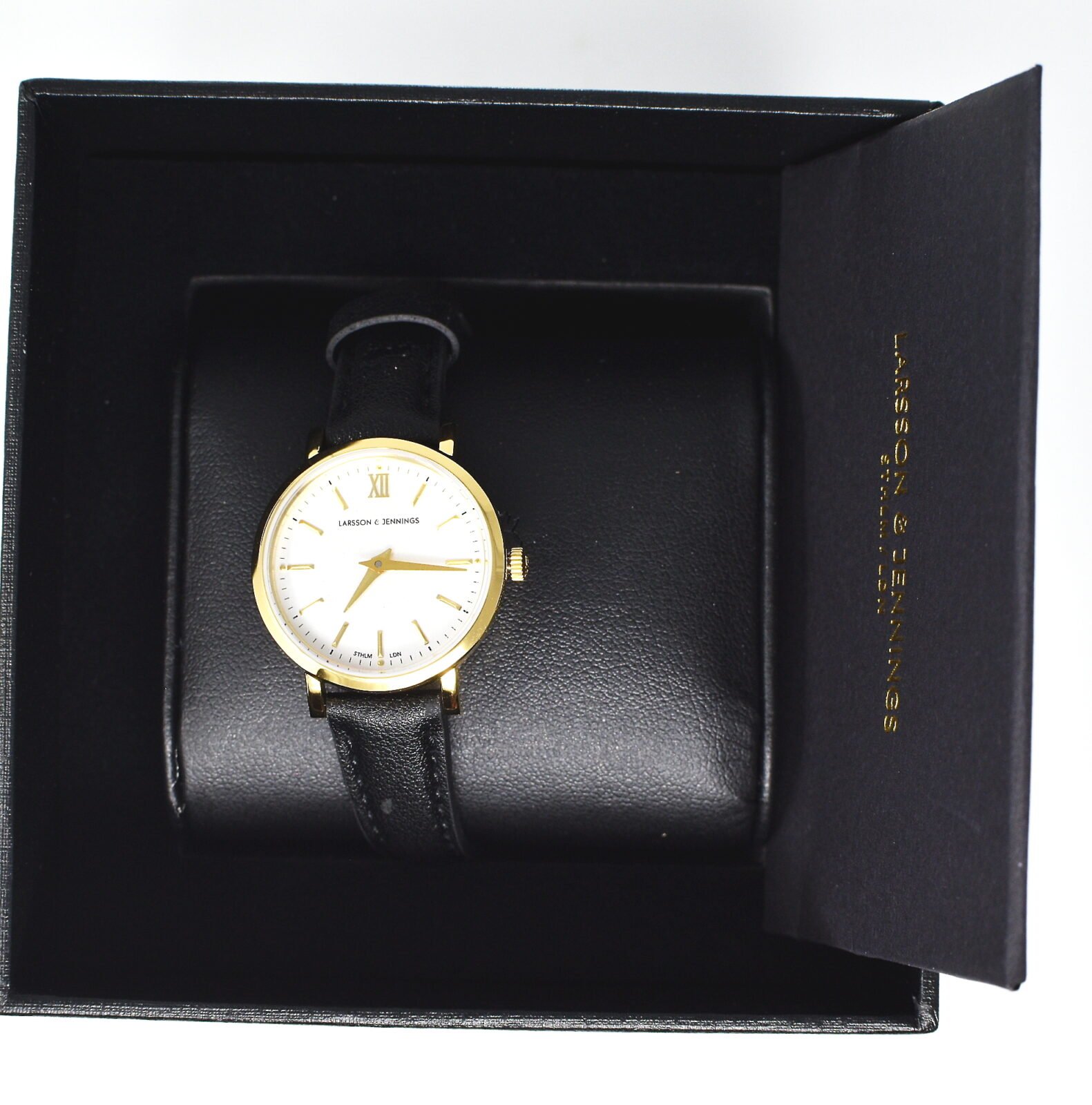 CompareThe Larsson & Jennings Watch LJXII Lugano LX26-LBK-GW is a beautifully crafted timepiece that combines modern design with classic elegance. With its clean and simple aesthetic, this watch is perfect for both casual and formal occasions. The 26mm white dial is complemented by gold hands and hour markers, making it easy to read at a glance. The black leather strap adds a touch of sophistication, while the stainless steel case and sapphire crystal glass ensure durability and scratch resistance.