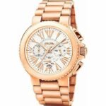 This handsome men’s Folli Follie Watchalicious watch has a stainless steel case and is fitted with an analogue chronograph quartz movement. It is fastened with a rose metal bracelet and has a white dial. The watch has a date function.