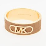 Michael’s Statement Link Collection is designed with oversized links that transforms traditional jewellery into maximalist pieces that can be worn separately or stacked together for a striking and bold look. Crafted from elevated brass and plated in 14K gold, this bold bangle features a brown croc leather with a single empire link set on top. Wear alone or stacked together with similar styles.