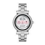 This Michael Kors Access touch screen ladies wrist watch has a silver stainless steel strap with a stainless steel case which complements the dial.