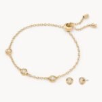 Michael kors gold metal bracelet and diamond stud earrings, bracelet is adjustable.