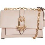 Carry everyday essentials in chic style with this light pink, cross body bag. Featuring a chain-link shoulder strap, it includes four small pockets in addition to the main compartment, whilst the front of the bag is adorned with a diamante embellished buckle. H: 16cm. W: 23cm. D: 11cm Strap Length: 10cm