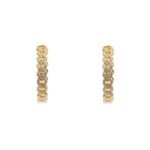 The captivating feature of these earrings is the pavé frozen curb chain design, adorned with sparkling transparent gold crystals. The pavé setting creates a scintillating effect, reflecting light from every angle and adding a dazzling allure to your look.