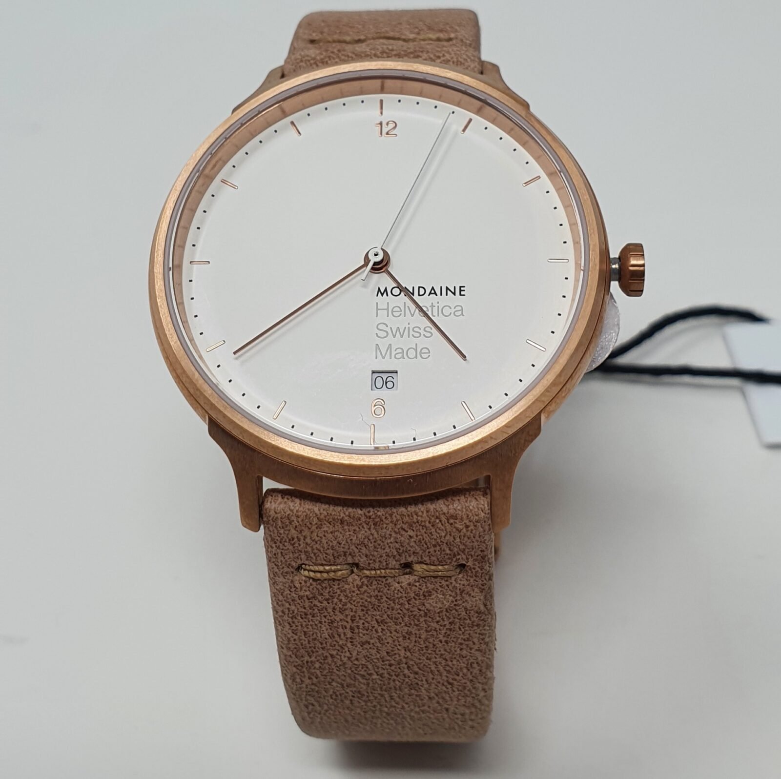 This is one of the Mondaine Helvetica design updated with luxe velour leather straps in beautiful tones including: apricot-sand and soft smudge grey. It has been exquisitely crafted with a brushed stainless steel rose gold IP plated case, which is then complimented by its refined white dial and delicate rose gold markers.