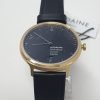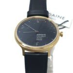 This Mondaine watch has a gold-coated stainless steel case 38mm in diameter and is fitted with a leather strap. Inside the case lies a movement and the watch features a sapphire crystal.