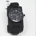 This Mondaine watch has a colour coated stainless steel case 43mm in diameter and is fitted with a textile strap. Inside the case lies a movement and the watch features a sapphire crystal.