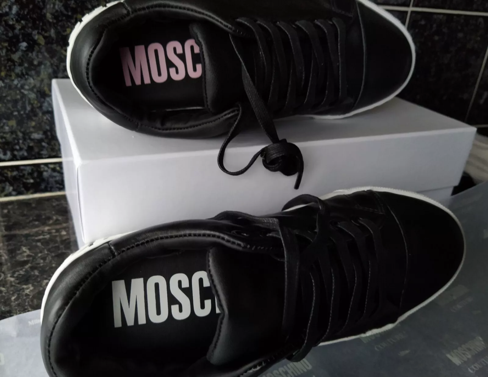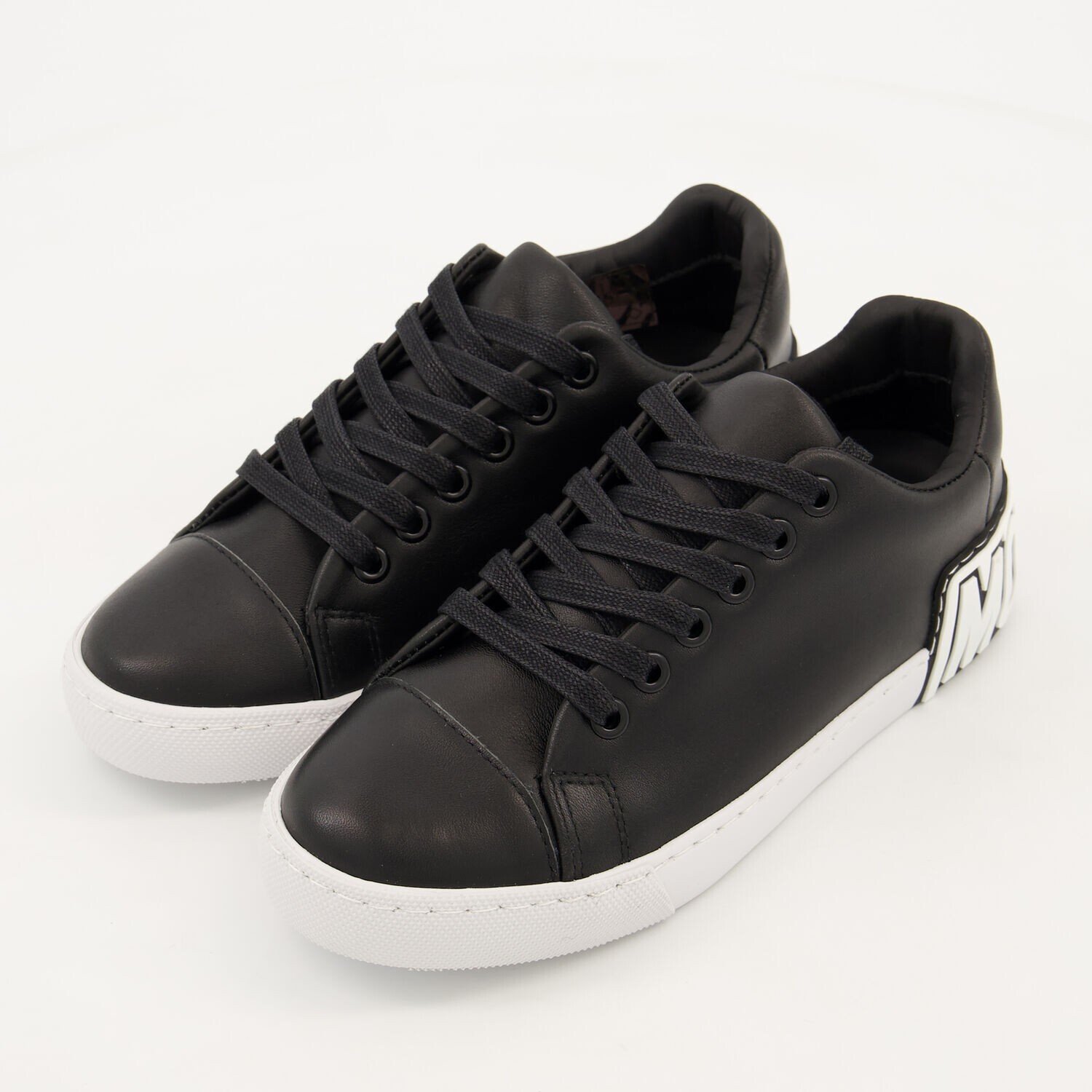 Step into bold, designer style with these MOSCHINO Couture Low Top Sneakers. Crafted from premium leather and showcasing a striking white maxi logo on the heel, these sneakers deliver a sleek yet standout look. Perfect for everyday wear or to elevate a casual outfit, they blend high fashion with everyday comfort.