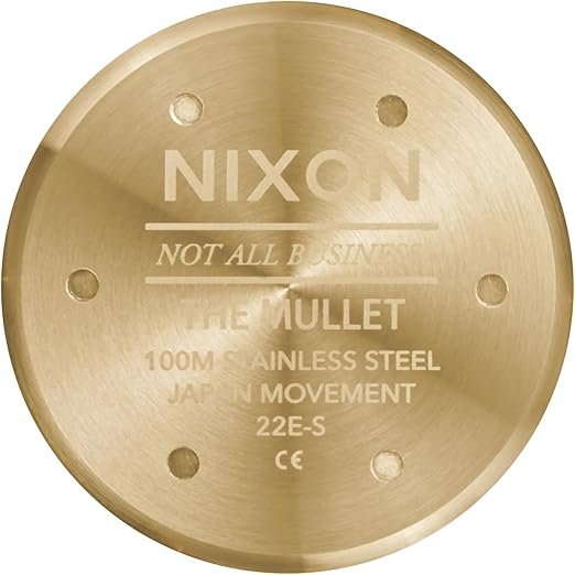 Elevated appeal with a sleek, ultra-thin profile – the Nixon Mullet Stainless Steel Watch delivers timeless style with modern performance. Designed in a striking light gold tone case and bracelet paired with a crisp white textured dial, this watch makes a refined yet bold statement. Powered by a reliable Japanese Miyota 2035 quartz movement, it ensures accurate timekeeping with classic 3-hand analogue display. The up-printed Arabic numerals and luminescent hands allow for quick readability day or night. Built from durable stainless steel, the 38mm case features chamfered edges and a slim 10mm profile that feels lightweight and comfortable on the wrist. The quick-release stainless steel bracelet allows instant strap changes without tools, secured by a locking deployment clasp for a snug fit. With 100 metres (10 ATM) water resistance, this watch is suitable for swimming and everyday wear.