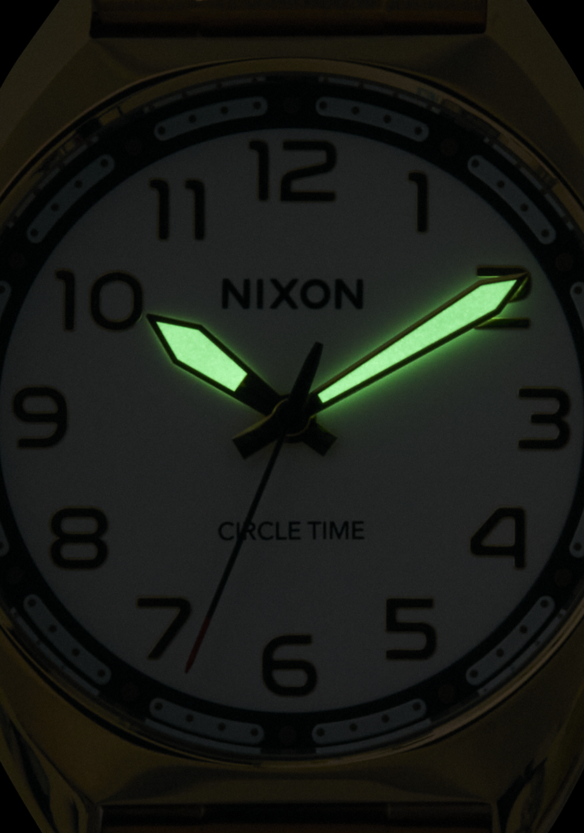 Elevate your everyday style with the sleek and ultra-thin Nixon Gold Tone & Black Mullet Analogue Watch. Designed for modern versatility, this 38mm timepiece combines a refined light gold stainless steel case with a bold black silicone strap for a contemporary, sporty finish. The sandblasted white dial features up-printed Arabic numerals and luminescent hands, ensuring clear visibility at a glance. Powered by a reliable Japanese Miyota 2035 quartz movement, this watch delivers precise timekeeping with effortless style. Built for performance as well as aesthetics, the 10 ATM (100 metres) water resistance makes it suitable for swimming and everyday water exposure. The quick-release silicone strap allows instant strap changes without tools, offering comfort and flexibility on the go. Presented boxed with user manual included — perfect for gifting or personal wear.