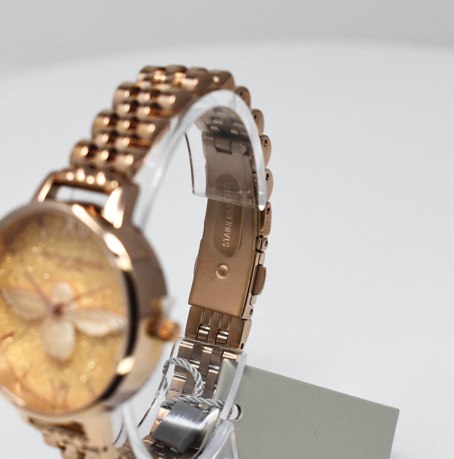 This beautiful sparkling timepiece features a glitter Demi dial embellished with a 3D bee motif. The design is completed with an entirely pale rose gold tone to give the piece a luxurious feel.