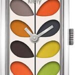 This timepiece from Irish fashion designer Orla Kiely has a rectangular silver case with a pale cream dial featuring the iconic multi stem design. The watch comes complete with a silver stainless steel mesh bracelet strap. This model is 30 meter water resistant.