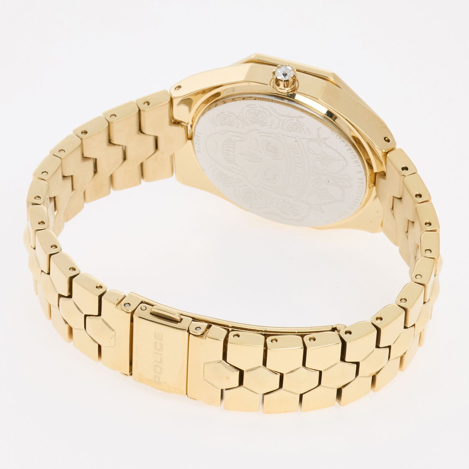 Make a bold statement with this stunning Police Montaria Skull Swarovski Gold Ladies Watch. Designed for those who appreciate contemporary fashion with an edge, this timepiece features a striking skull motif adorned with sparkling Swarovski elements, set against a luxurious gold-tone finish. Crafted with a durable stainless steel case and bracelet, this watch combines elegance with everyday practicality. The 36mm round case offers a comfortable yet eye-catching fit, while the gold dial enhances its premium appeal. Powered by a reliable quartz movement, it ensures accurate timekeeping wherever you go. Protected by hardened mineral glass, this watch resists scratches and daily wear. With 3 ATM water resistance, it is suitable for light splashes and everyday use. A perfect accessory for fashion-forward women who want to stand out. Supplied with original box, instructions, and warranty documentation – ideal for gifting.