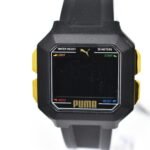 Details: PUMA’s Remix 42mm watch features a negative digital display dial with rose gold-tone accents, LCD movement and black polyurethane strap.